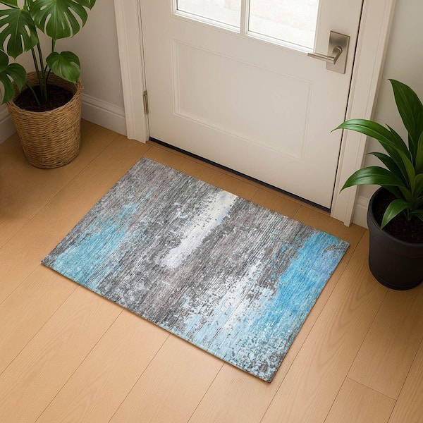 Mayfield Premium Machine Washable Abstract AMF1777 Teal 2 ft. x 3 ft. Area Rug