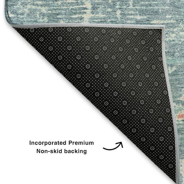 Mayfield Premium Machine Washable Abstract AMF1778 Teal 8 ft. x 8 ft. Round Rug