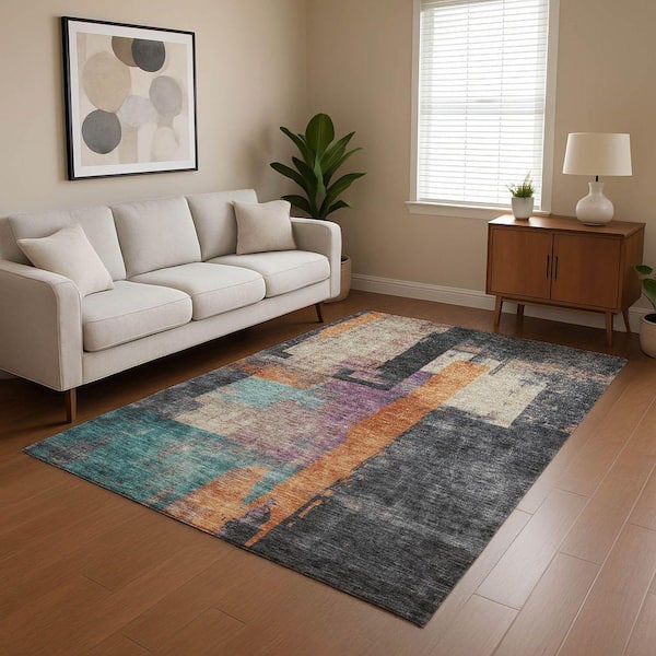 Mayfield Premium Machine Washable Abstract AMF1779 Charcoal 8 ft. x 10 ft. Area Rug