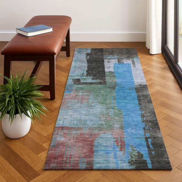 Mayfield Premium Machine Washable Abstract AMF1779 Sky 2 ft. 3 in. x 7 ft. 6 in. Runner Rug