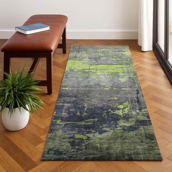 Mayfield Premium Machine Washable Abstract AMF1780 Lime 2 ft. 3 in. x 7 ft. 6 in. Runner Rug