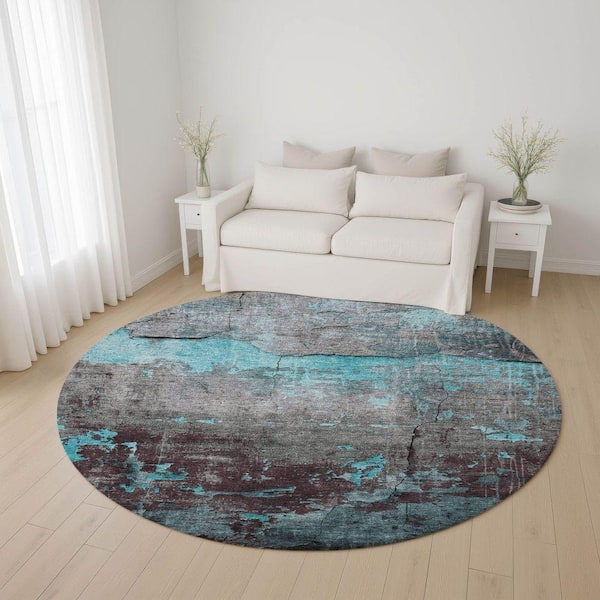 Mayfield Premium Machine Washable Abstract AMF1780 Teal 8 ft. x 8 ft. Round Rug
