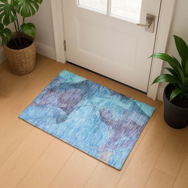 Mayfield Premium Machine Washable Abstract AMF1781 Blue 2 ft. x 3 ft. Area Rug