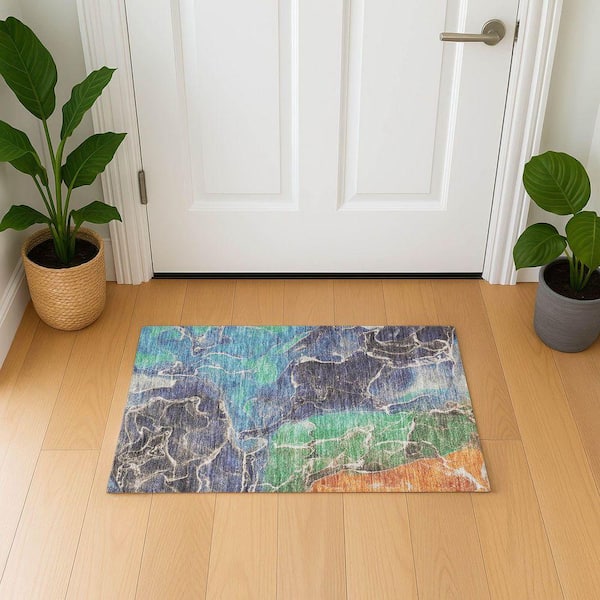 Mayfield Premium Machine Washable Abstract AMF1782 Blue 2 ft. x 3 ft. Area Rug