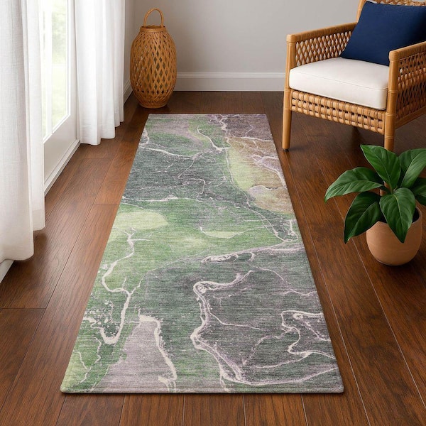 Mayfield Premium Machine Washable Abstract AMF1782 Green 2 ft. 3 in. x 7 ft. 6 in. Runner Rug