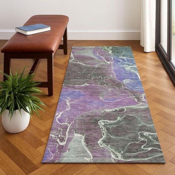 Mayfield Premium Machine Washable Abstract AMF1782 Purple 2 ft. 3 in. x 7 ft. 6 in. Runner Rug