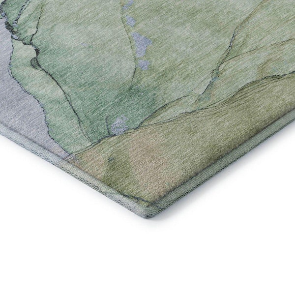 Mayfield Premium Machine Washable Abstract AMF1783 Aloe 8 ft. x 10 ft. Area Rug