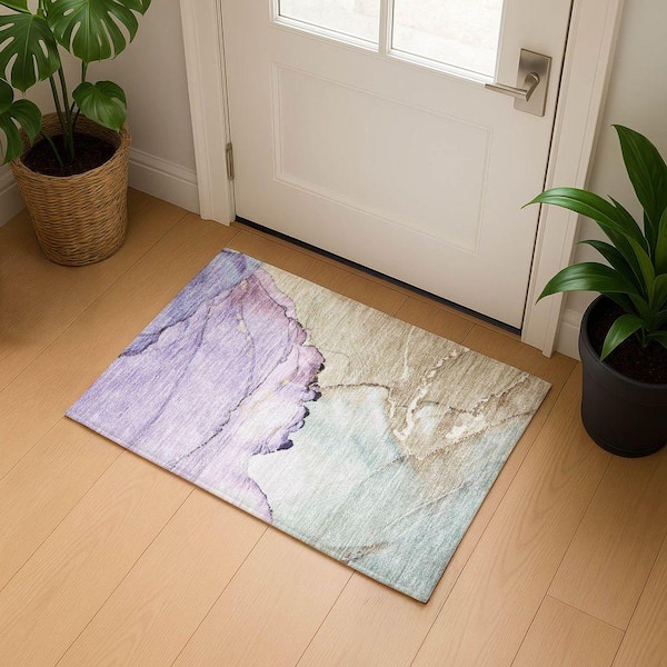 Mayfield Premium Machine Washable Abstract AMF1783 Lavender 2 ft. x 3 ft. Area Rug