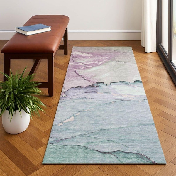 Mayfield Premium Machine Washable Abstract AMF1783 Seafoam 2 ft. 3 in. x 7 ft. 6 in. Runner Rug