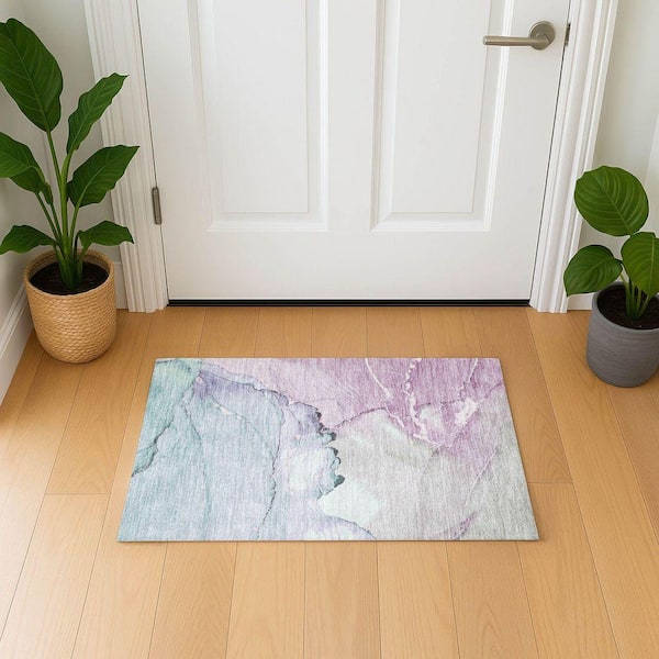 Mayfield Premium Machine Washable Abstract AMF1783 Seafoam 2 ft. x 3 ft. Area Rug