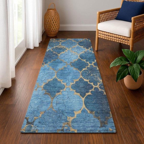 Mayfield Premium Machine Washable Abstract AMF1784 Blue 2 ft. 3 in. x 7 ft. 6 in. Runner Rug
