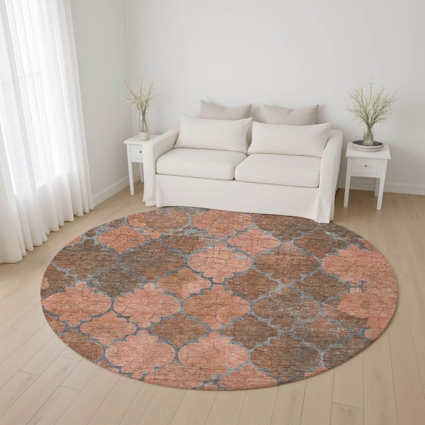 Mayfield Premium Machine Washable Abstract AMF1784 Copper 8 ft. x 8 ft. Round Rug