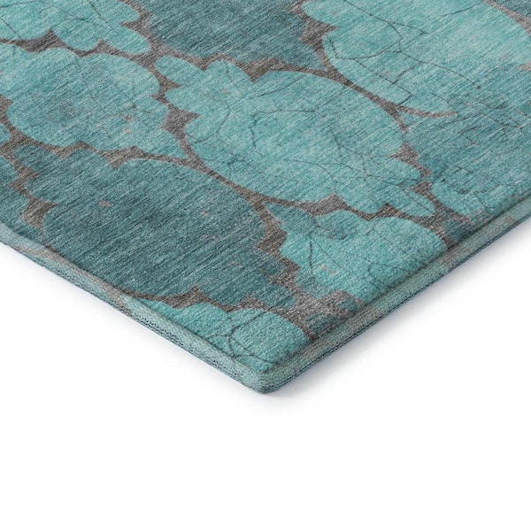 Mayfield Premium Machine Washable Abstract AMF1784 Teal 3 ft. x 5 ft. Area Rug