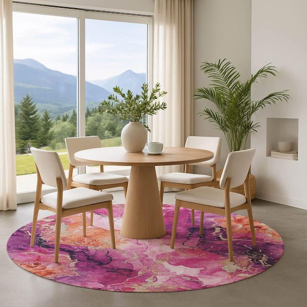 Mayfield Premium Machine Washable Abstract AMF1785 Garnet 8 ft. x 8 ft. Round Rug