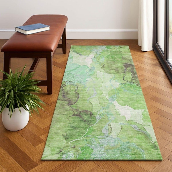 Mayfield Premium Machine Washable Abstract AMF1785 Green 2 ft. 3 in. x 7 ft. 6 in. Runner Rug
