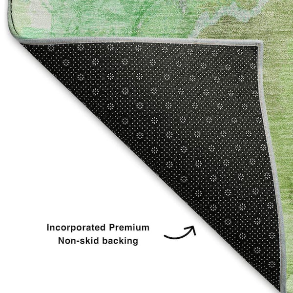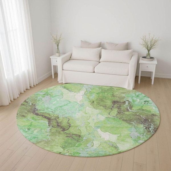 Mayfield Premium Machine Washable Abstract AMF1785 Green 8 ft. x 8 ft. Round Rug