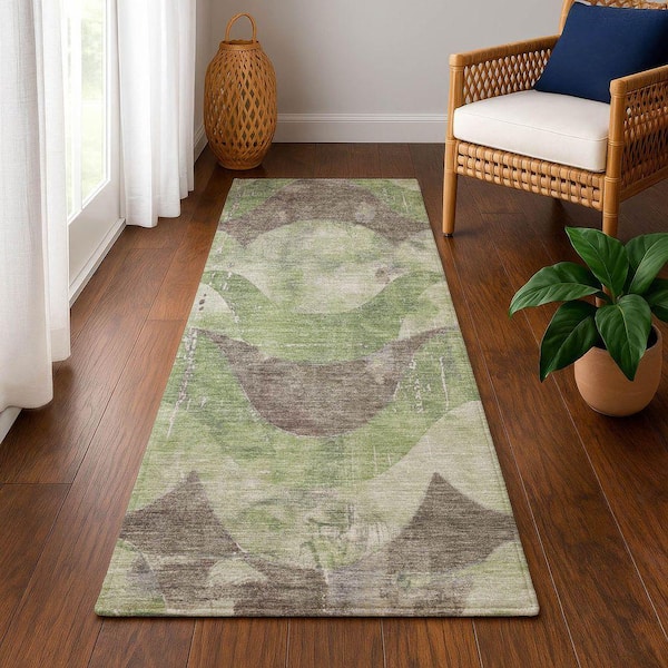 Mayfield Premium Machine Washable Abstract AMF1786 Aloe 2 ft. 3 in. x 7 ft. 6 in. Runner Rug