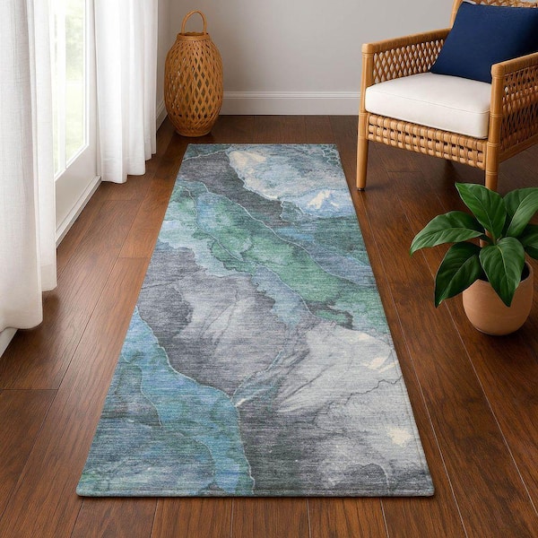Mayfield Premium Machine Washable Abstract AMF1787 Blue 2 ft. 3 in. x 7 ft. 6 in. Runner Rug