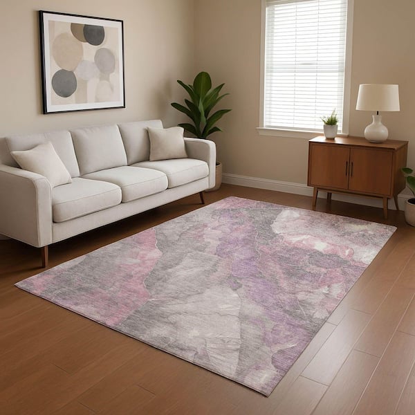 Mayfield Premium Machine Washable Abstract AMF1787 Blush 3 ft. x 5 ft. Area Rug