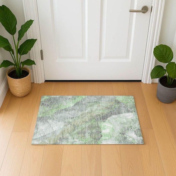 Mayfield Premium Machine Washable Abstract AMF1787 Green 2 ft. x 3 ft. Area Rug