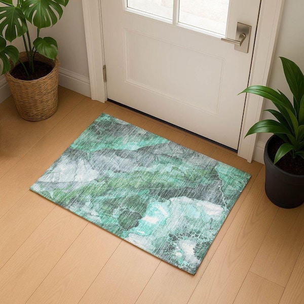 Mayfield Premium Machine Washable Abstract AMF1787 Teal 2 ft. x 3 ft. Area Rug