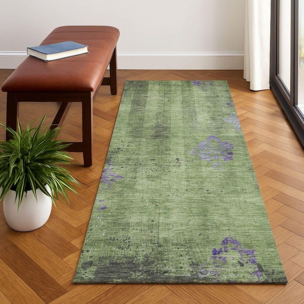 Mayfield Premium Machine Washable Abstract AMF1788 Aloe 2 ft. 3 in. x 7 ft. 6 in. Runner Rug