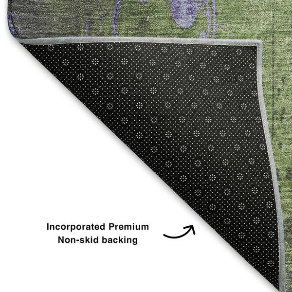 Mayfield Premium Machine Washable Abstract AMF1788 Aloe 8 ft. x 8 ft. Round Rug