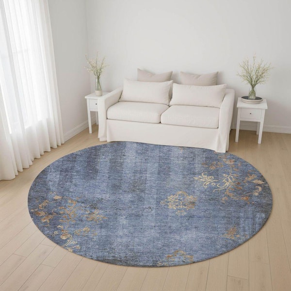 Mayfield Premium Machine Washable Abstract AMF1788 Denim 8 ft. x 8 ft. Round Rug