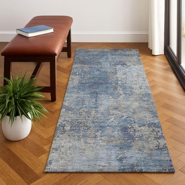 Mayfield Premium Machine Washable Abstract AMF1789 Denim 2 ft. 3 in. x 7 ft. 6 in. Runner Rug