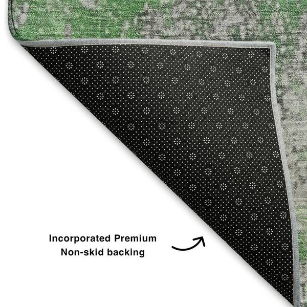 Mayfield Premium Machine Washable Abstract AMF1789 Green 8 ft. x 8 ft. Round Rug