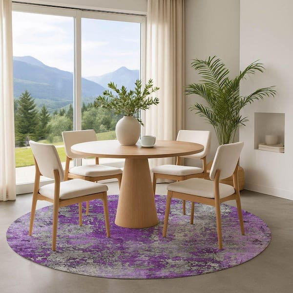 Mayfield Premium Machine Washable Abstract AMF1789 Purple 8 ft. x 8 ft. Round Rug
