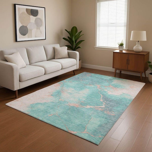 Mayfield Premium Machine Washable Abstract AMF1790 Teal 3 ft. x 5 ft. Area Rug