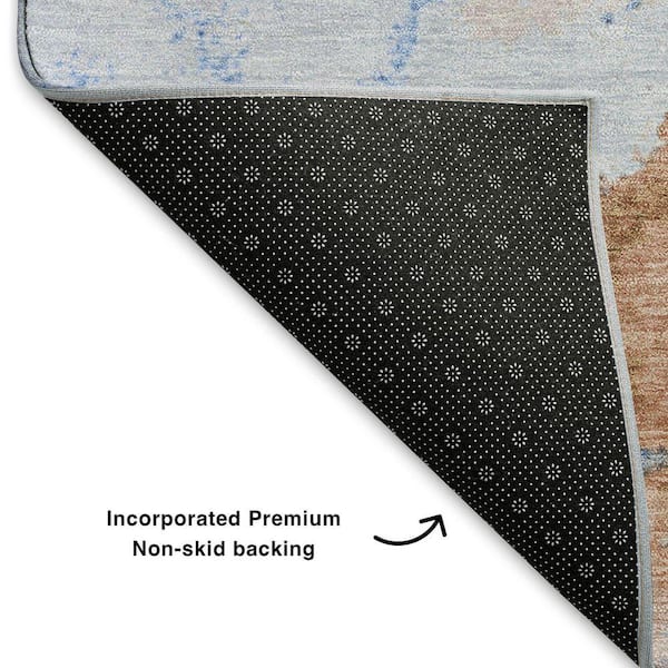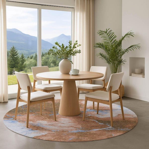 Mayfield Premium Machine Washable Abstract AMF1790 Terracotta 8 ft. x 8 ft. Round Rug
