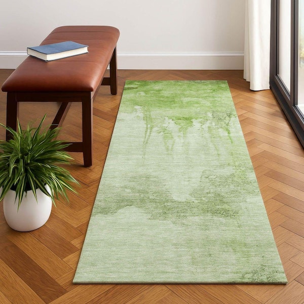 Mayfield Premium Machine Washable Abstract AMF1791 Aloe 2 ft. 3 in. x 7 ft. 6 in. Runner Rug