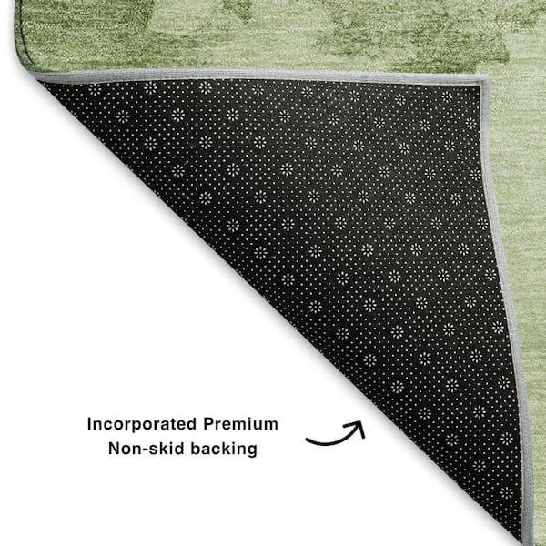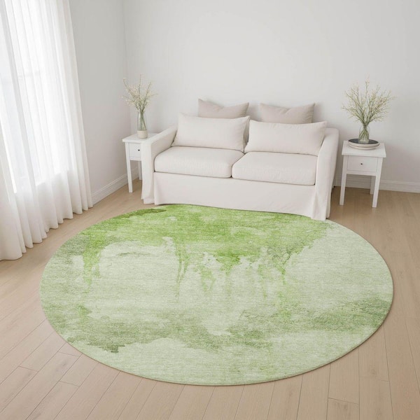 Mayfield Premium Machine Washable Abstract AMF1791 Aloe 8 ft. x 8 ft. Round Rug