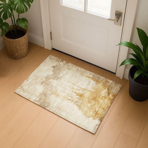 Mayfield Premium Machine Washable Abstract AMF1791 Gold 2 ft. x 3 ft. Area Rug
