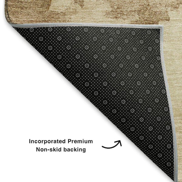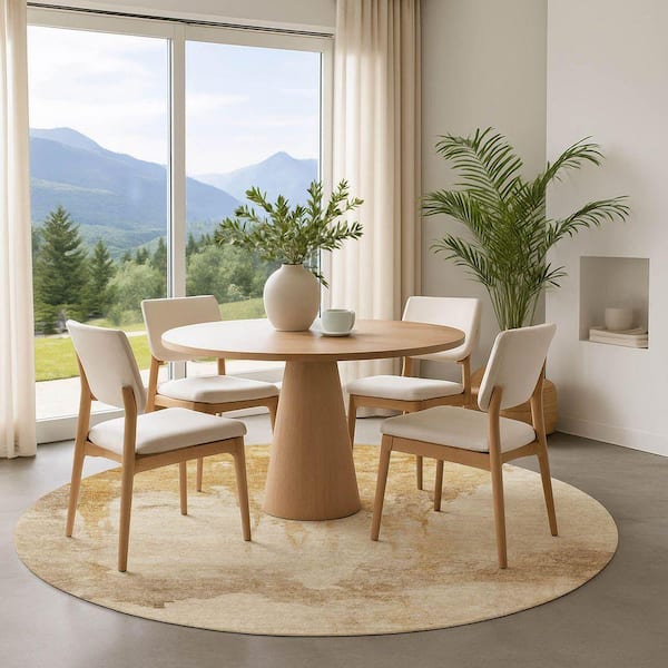 Mayfield Premium Machine Washable Abstract AMF1791 Gold 8 ft. x 8 ft. Round Rug