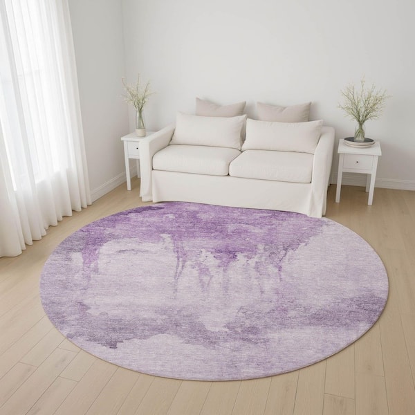 Mayfield Premium Machine Washable Abstract AMF1791 Lavender 8 ft. x 8 ft. Round Rug