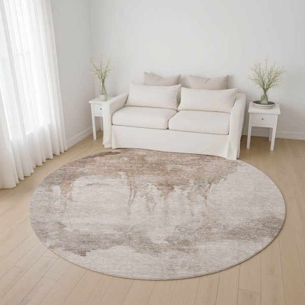 Mayfield Premium Machine Washable Abstract AMF1791 Taupe 8 ft. x 8 ft. Round Rug