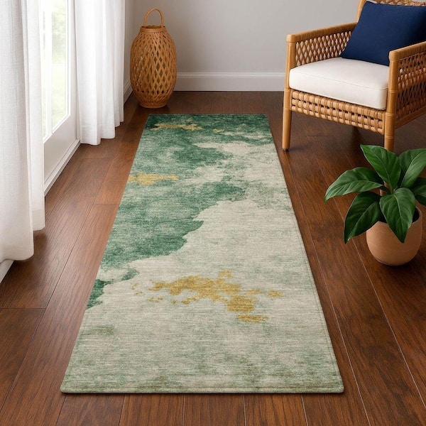 Mayfield Premium Machine Washable Abstract AMF1792 Emerald 2 ft. 3 in. x 7 ft. 6 in. Runner Rug