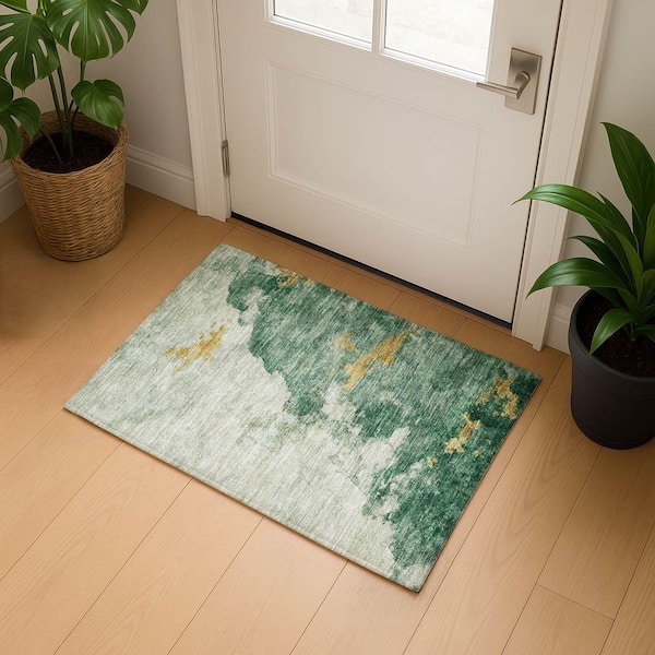 Mayfield Premium Machine Washable Abstract AMF1792 Emerald 2 ft. x 3 ft. Area Rug