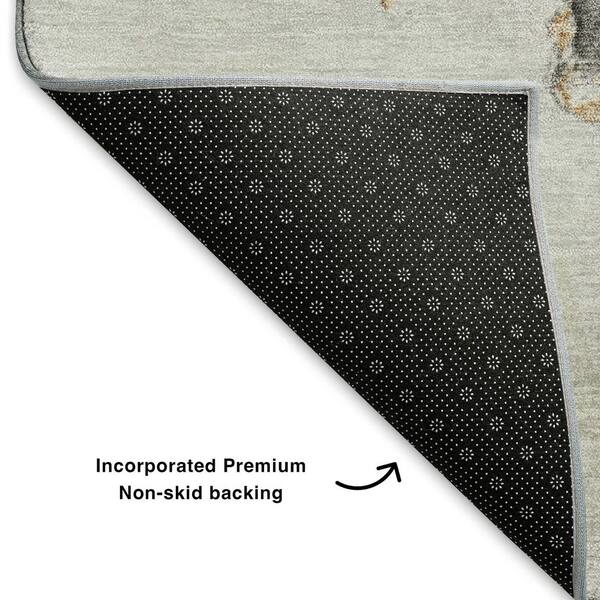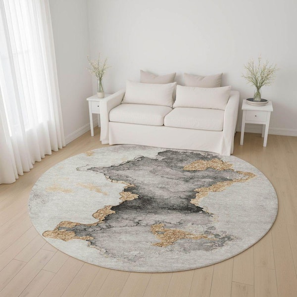 Mayfield Premium Machine Washable Abstract AMF1795 Gray 8 ft. x 8 ft. Round Rug
