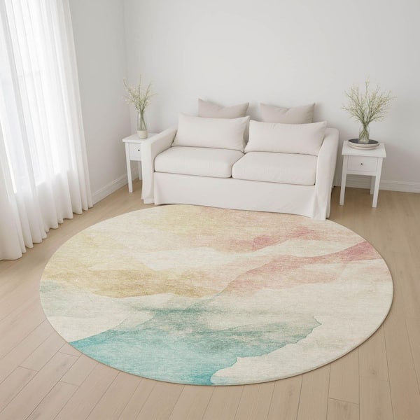 Mayfield Premium Machine Washable Abstract AMF1797 Pearl 8 ft. x 8 ft. Round Rug