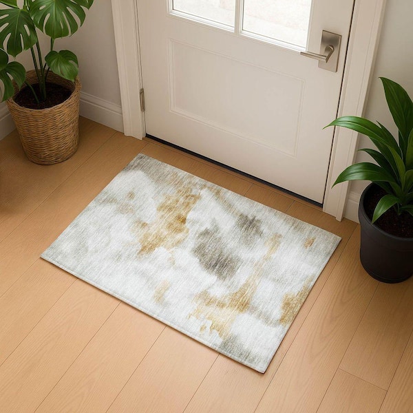 Mayfield Premium Machine Washable Abstract AMF1800 Putty 2 ft. x 3 ft. Area Rug