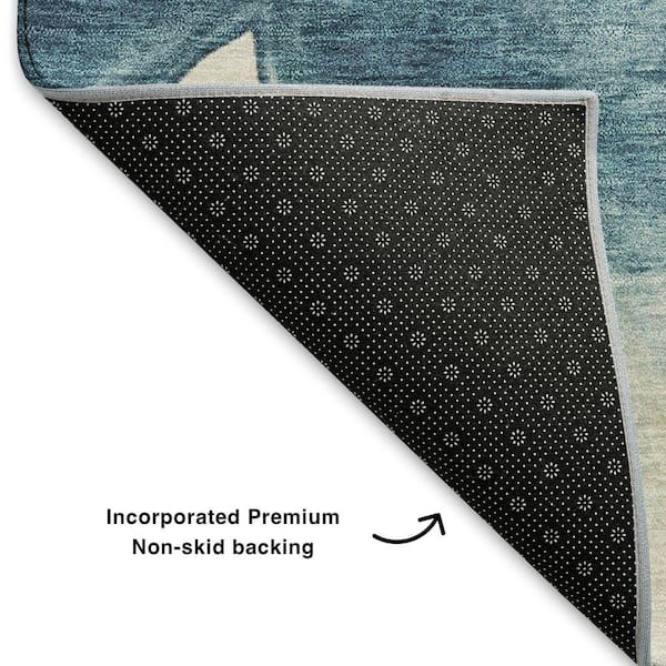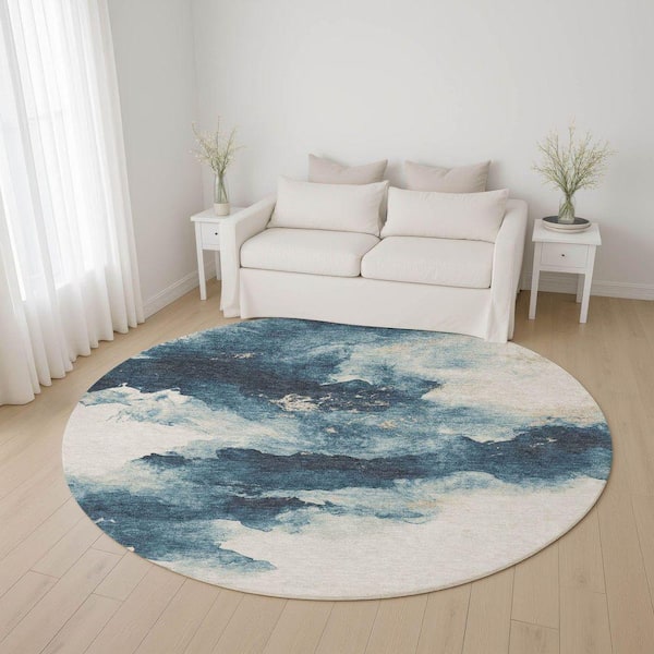 Mayfield Premium Machine Washable Abstract AMF1801 Navy 8 ft. x 8 ft. Round Rug