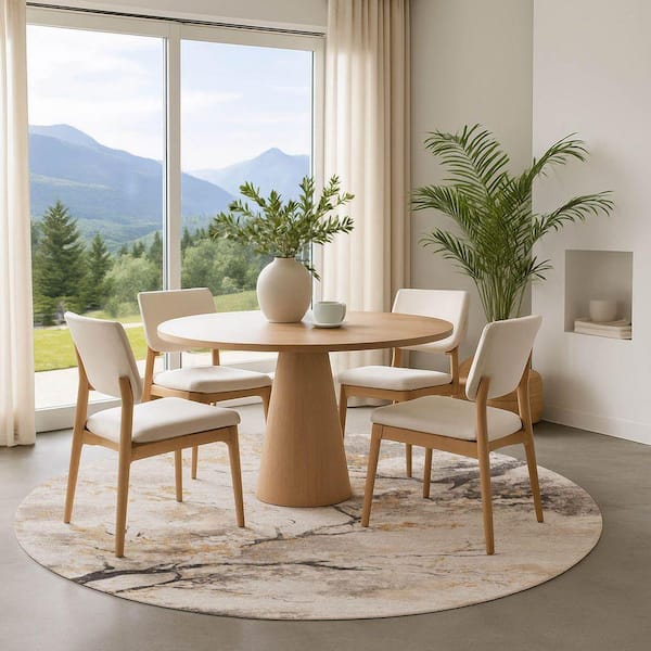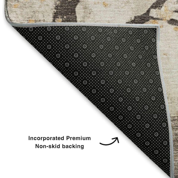 Mayfield Premium Machine Washable Abstract AMF1804 Putty 8 ft. x 8 ft. Round Rug