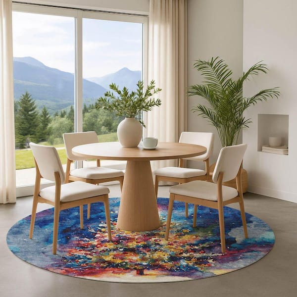 Mayfield Premium Machine Washable Abstract AMF1806 Navy 8 ft. x 8 ft. Round Rug