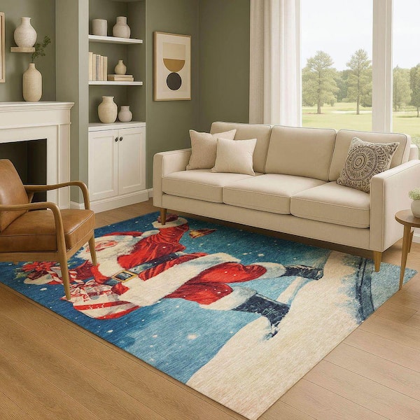 Mayfield Premium Machine Washable Abstract AMF1807 Blue 3 ft. x 4 ft. Area Rug