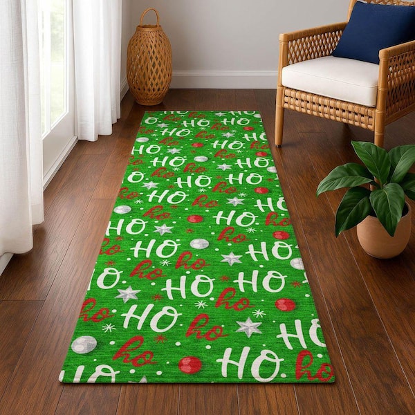 Mayfield Premium Machine Washable Abstract AMF1810 Green 2 ft. 3 in. x 7 ft. 6 in. Runner Rug