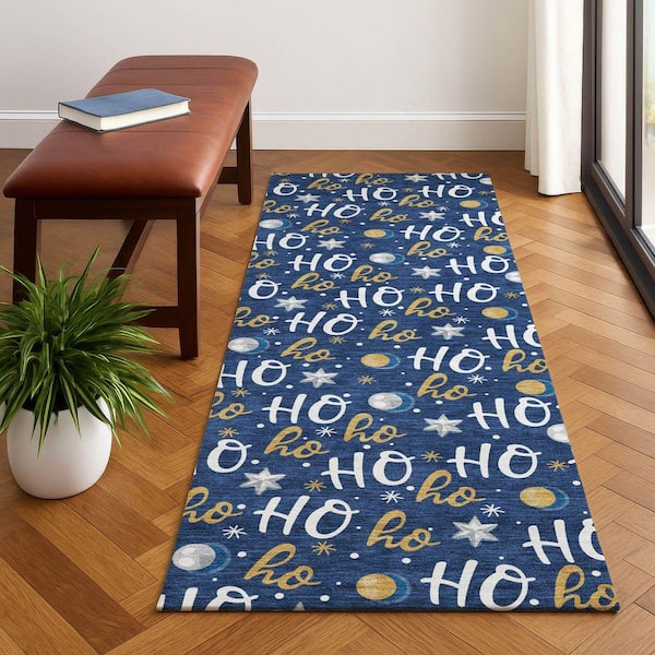 Mayfield Premium Machine Washable Abstract AMF1810 Navy 2 ft. 3 in. x 7 ft. 6 in. Runner Rug